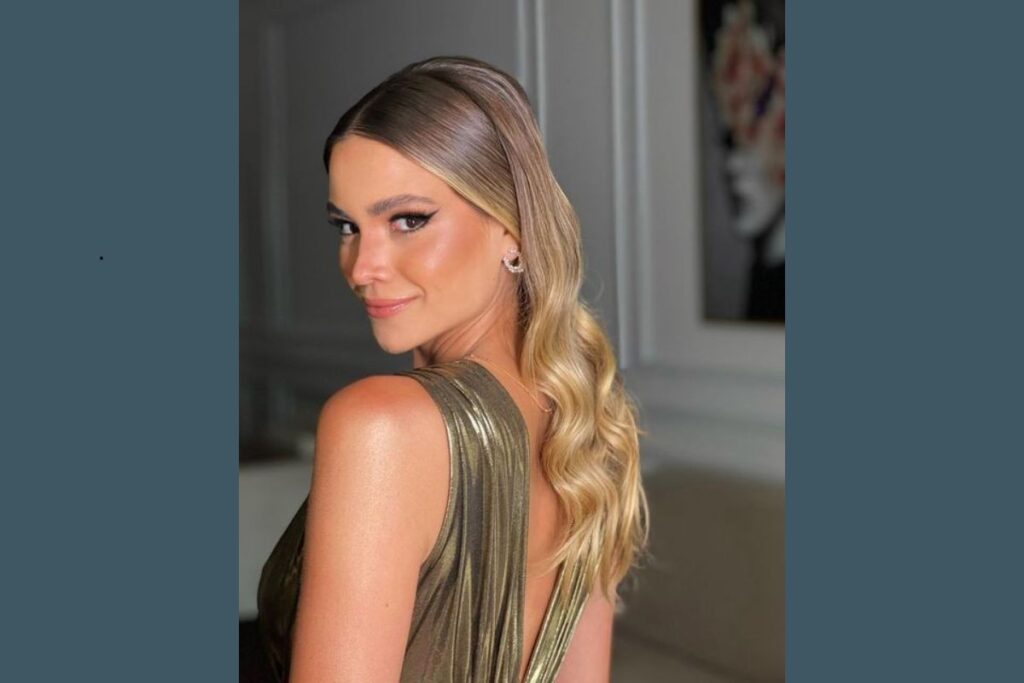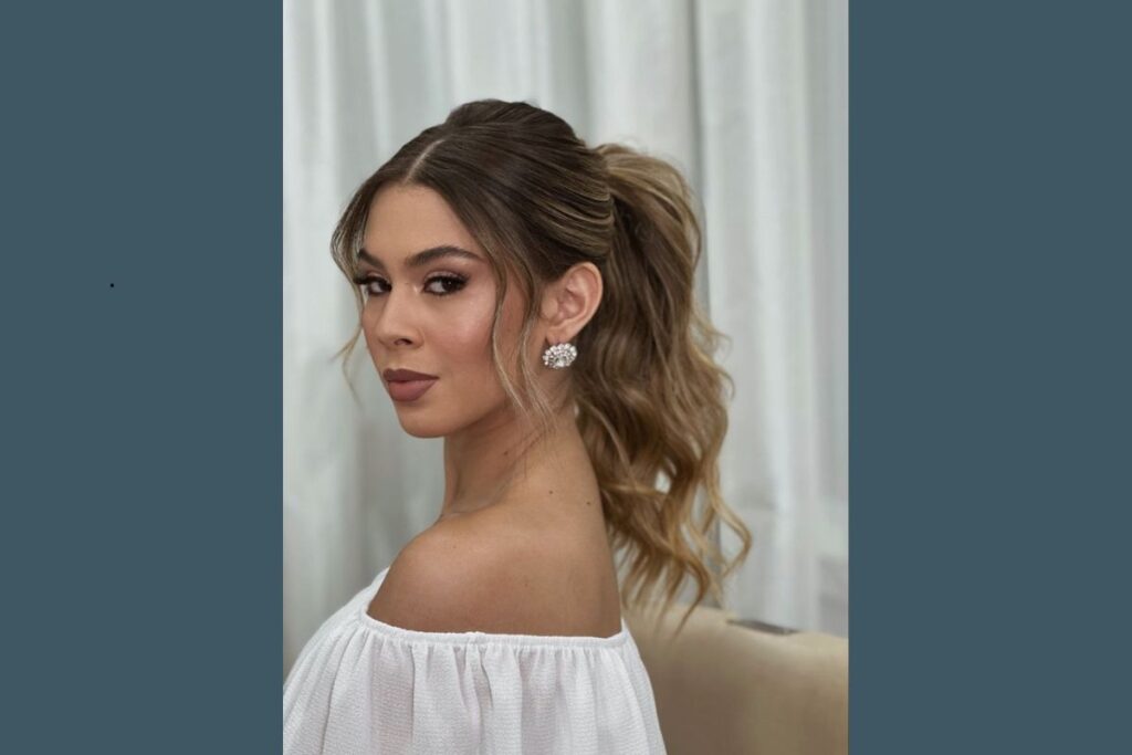 Esse penteado une praticidade e elegância. O rabo de cavalo ganha charme extra com ondas soltas no comprimento, criando um visual equilibrado. É uma opção certeira para quem quer conforto e estilo durante toda a noite.