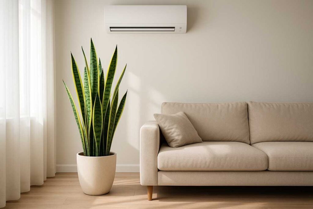 Folhas verticais e rígidas, ótima para interiores. Suporta bem ambientes com pouca luz, ar-condicionado e longos períodos sem rega.