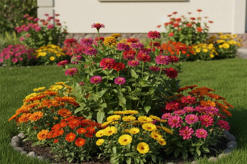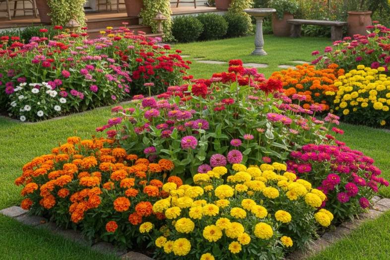 Uma boa dica é plantar calêndulas nas bordas e zínias mais altas ao fundo, formando camadas coloridas. Essa técnica valoriza o espaço e deixa o jardim com aparência profissional.