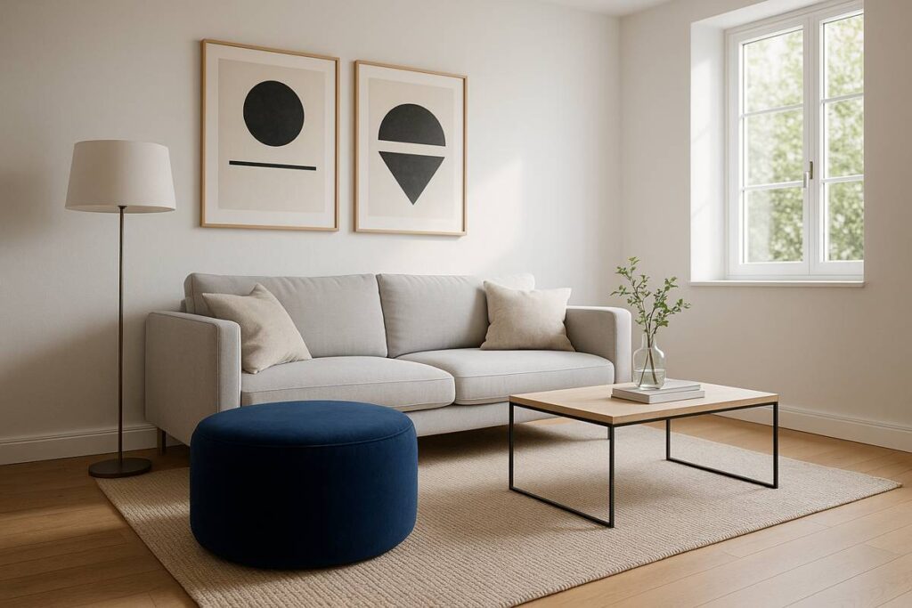 - Sala média ou grande: dá para usar puffs maiores ou até dois puffs juntos.