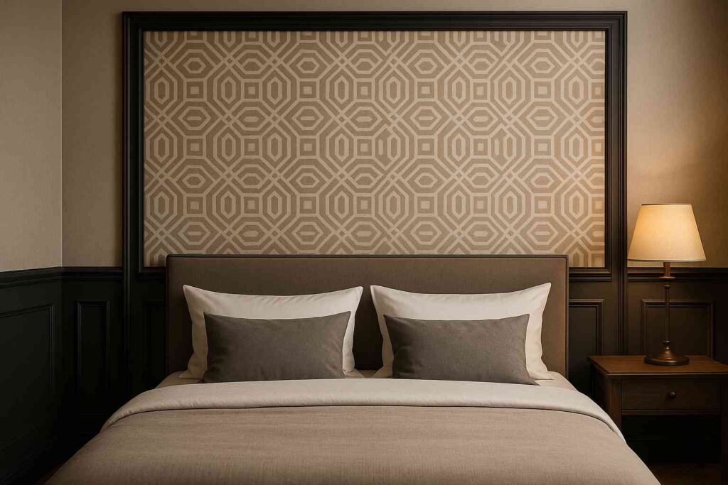 Além disso, a moldura pode delimitar áreas específicas, como a cabeceira da cama, ajudando a criar uma composição equilibrada.