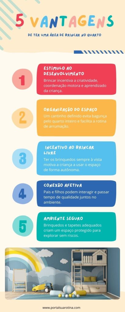 Além disso, ajuda os pais a manter a casa mais organizada, já que os brinquedos ficam concentrados em um local específico.