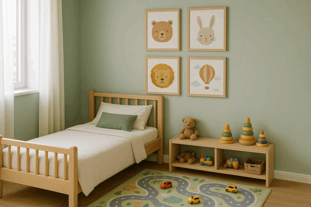 Esse espaço permite que a criança explore, aprenda e brinque com segurança, dentro do próprio ambiente de descanso.