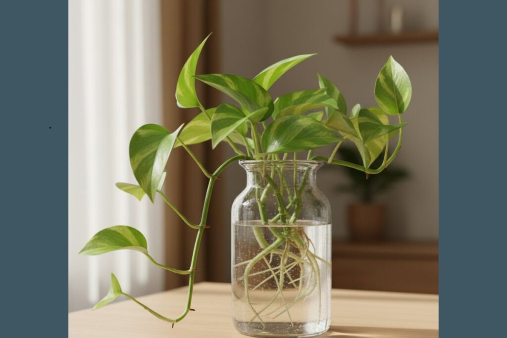 Resistente e versátil, a jiboia é perfeita para iniciantes. Basta cortar um galho e colocá-lo em um recipiente com água limpa e algumas pedras decorativas.