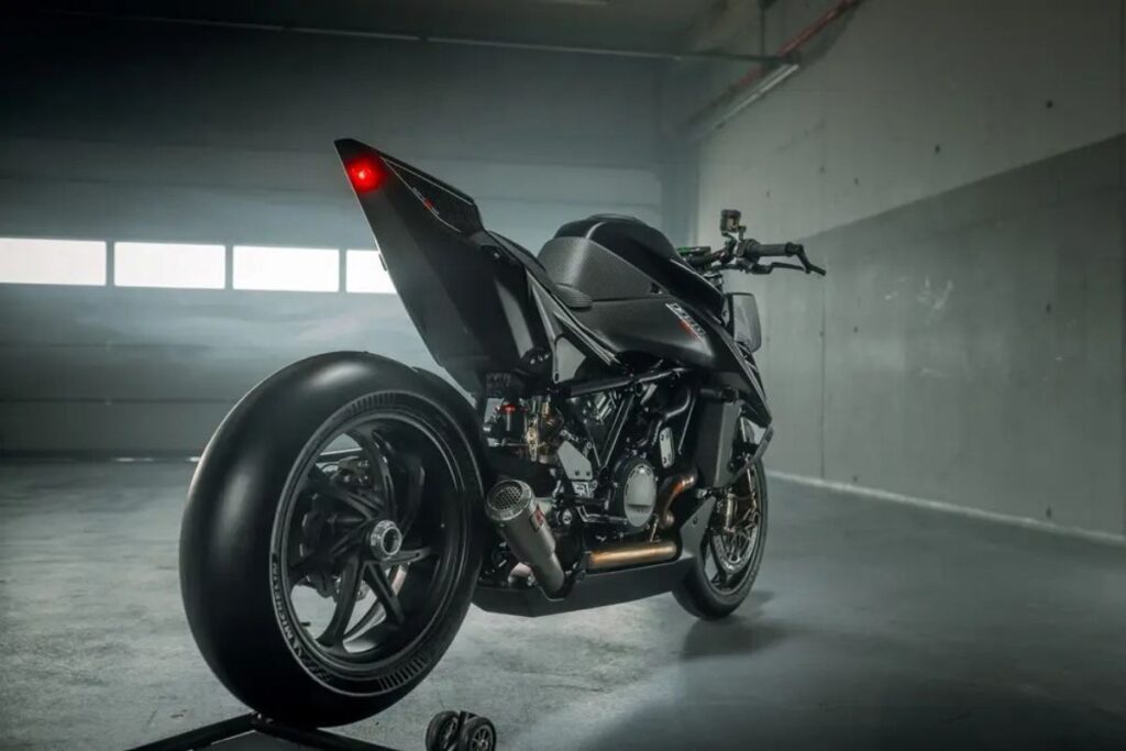 Outro ponto central do projeto está na perda de peso. A KTM conseguiu reduzir cerca de 20 kg em relação à versão de rua.