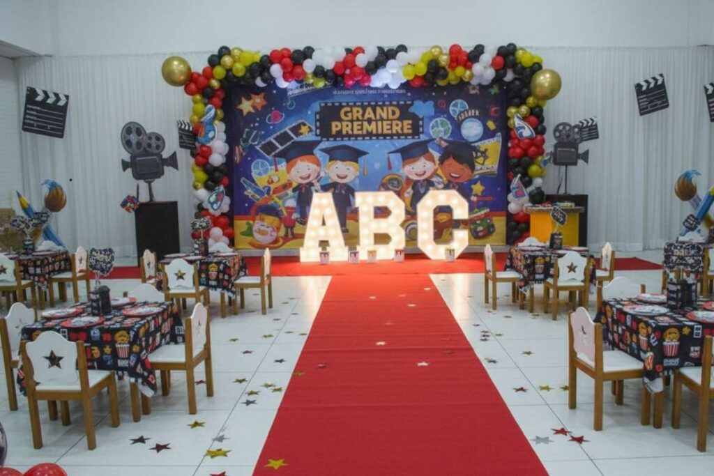 O evento se transforma em uma grande premiére. As crianças podem entrar no espaço por um “tapete vermelho”, enquanto os pais fotografam o momento.