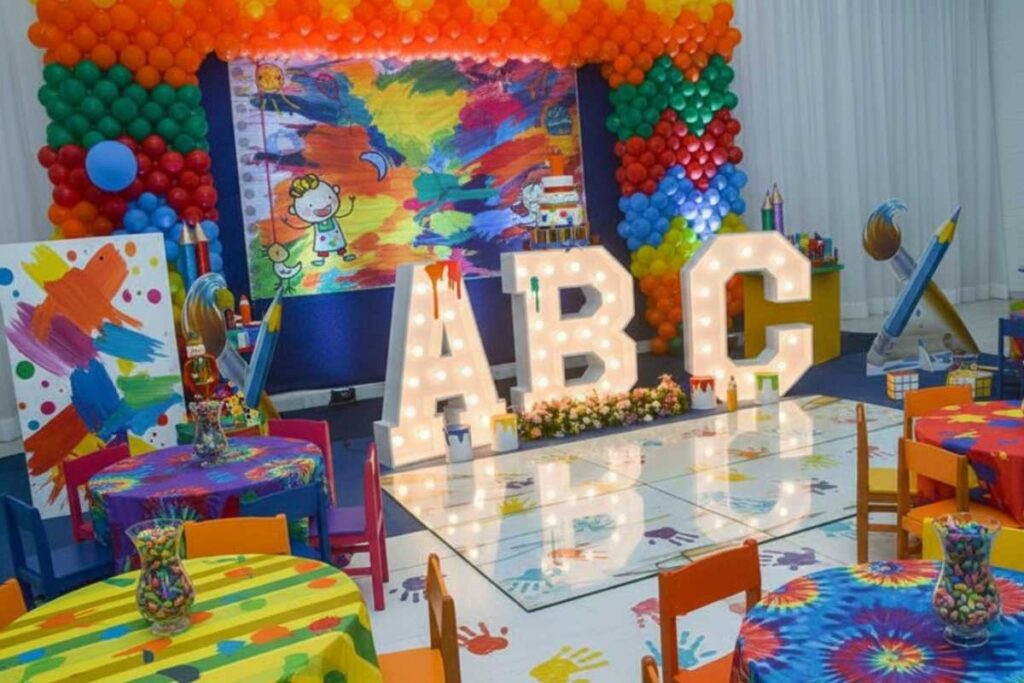 Esse tema transforma o evento em uma explosão colorida e moderna. Ele combina com crianças que adoram criar, pintar e expressar emoções.