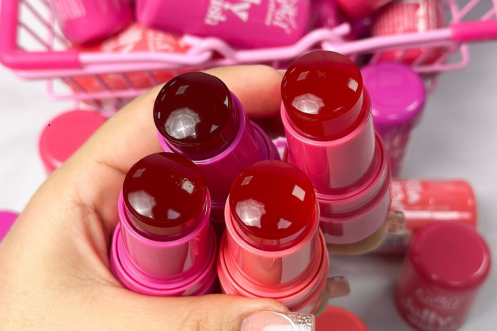 Diferente do blush em pó tradicional, o jelly blush cria um efeito de pele saudável, como se o rubor viesse naturalmente do calor. Ele costuma ser aplicado em bastão ou diretamente com os dedos, o que facilita o uso no dia a dia.