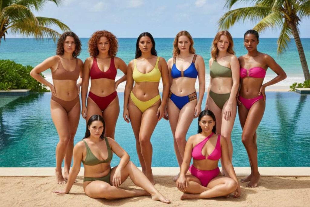 A pluralidade de corpos influencia diretamente as tendências de biquíni 2026. As marcas finalmente compreendem que a beleza não está em um padrão único, mas na possibilidade de vestir o que respeita cada necessidade.