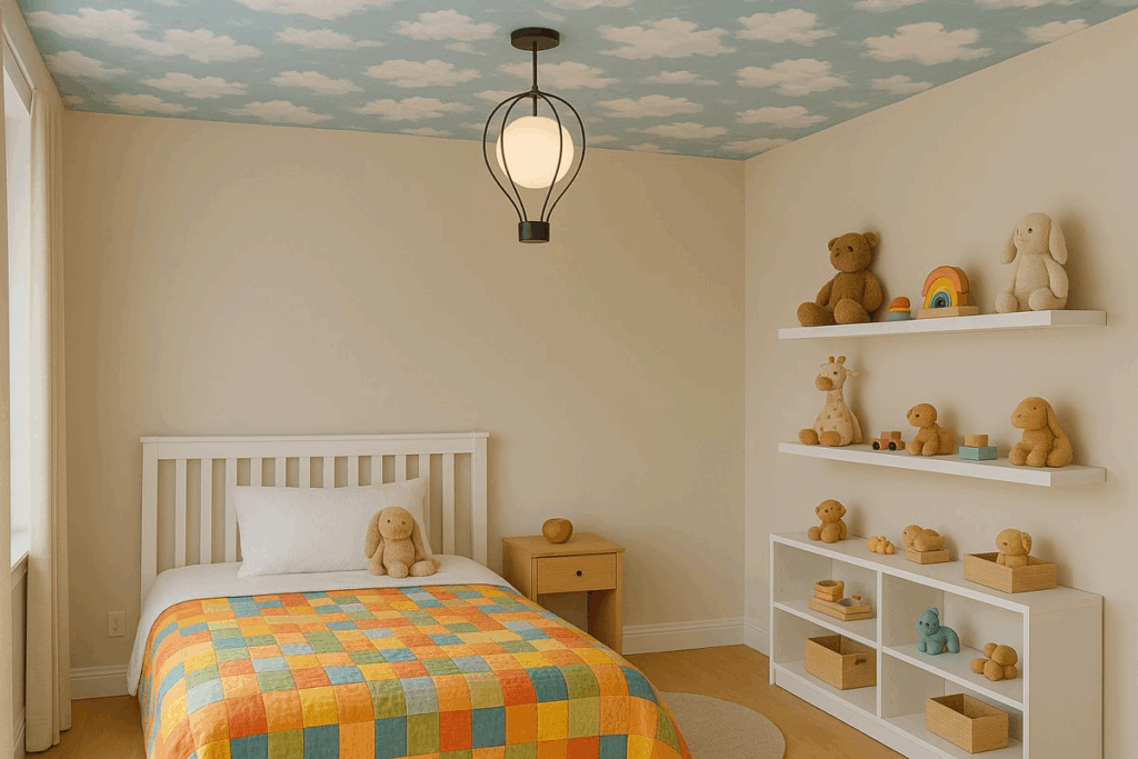 Um teto decorado é mais do que um recurso estético. Ele influencia diretamente a percepção visual da criança, estimula a criatividade e cria uma atmosfera aconchegante.