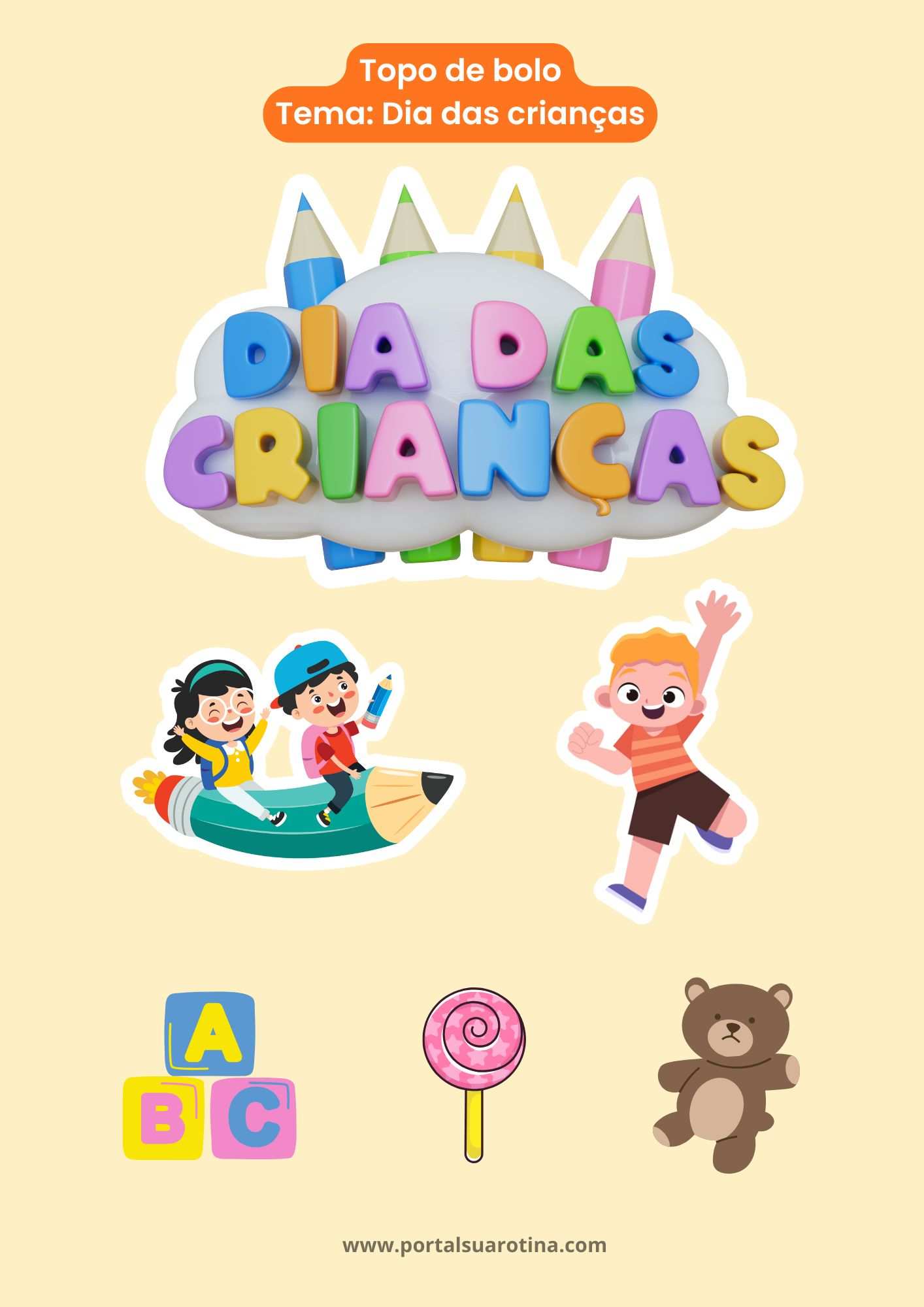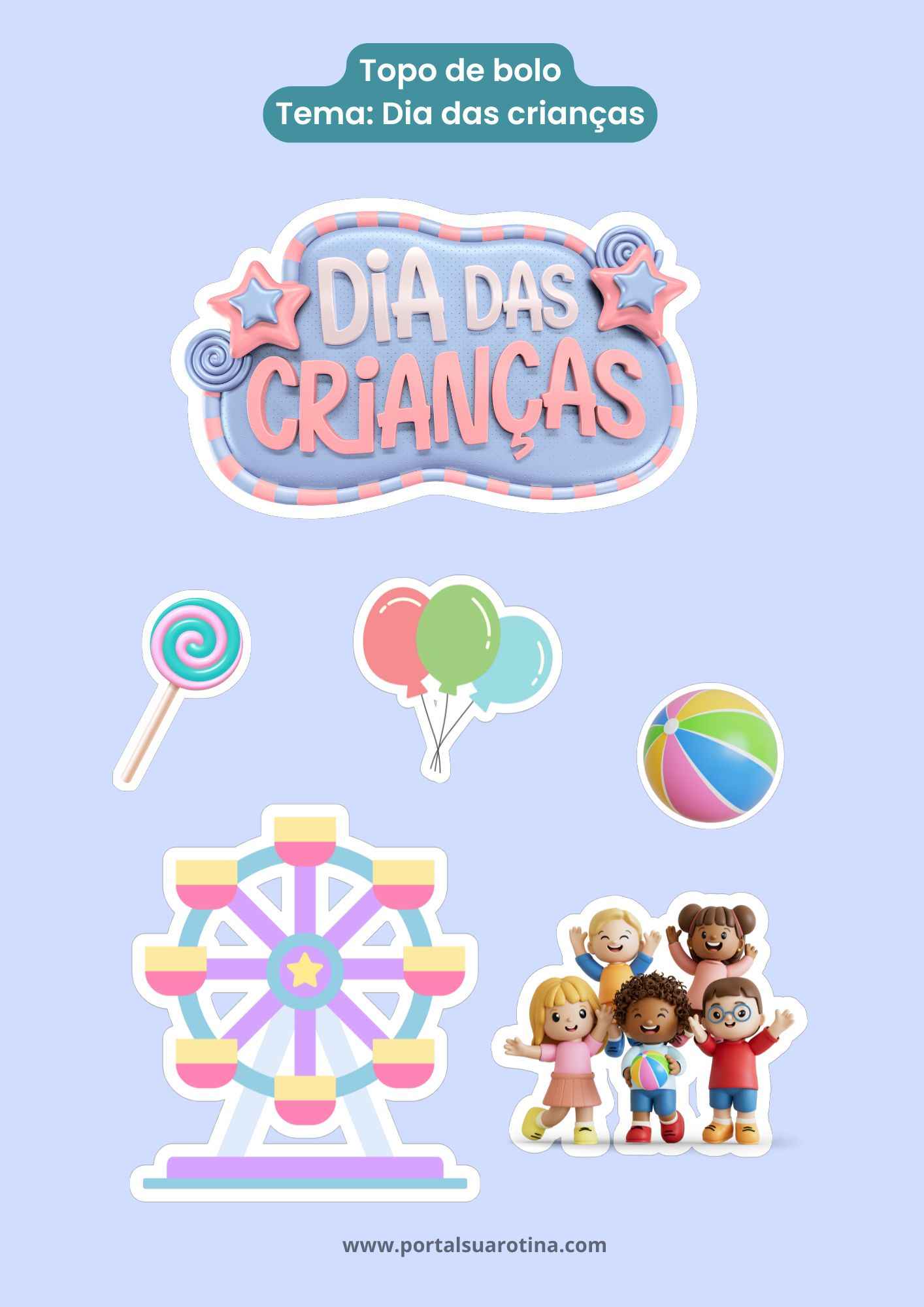 Neste artigo, você vai descobrir ideias criativas, dicas de montagem e uma seleção de modelos de topo de bolo Feliz Dia das Crianças para imprimir grátis, prontos para baixar e usar.