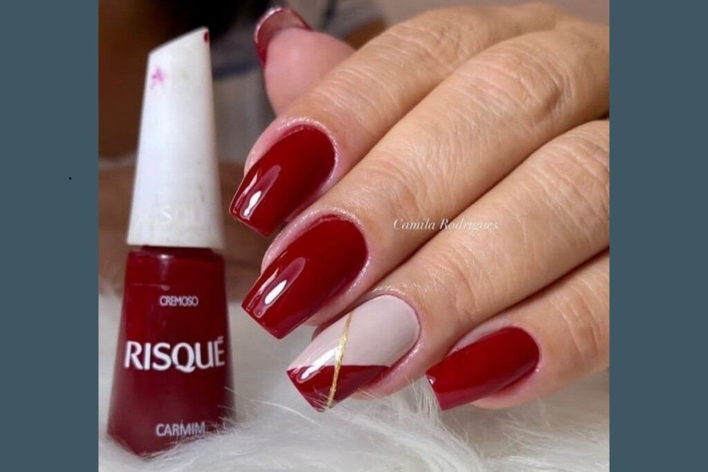 Aqui, o vermelho ganha um ar moderno com a francesinha branca nas pontas, uma inversão criativa que quebra a tradição e adiciona charme.