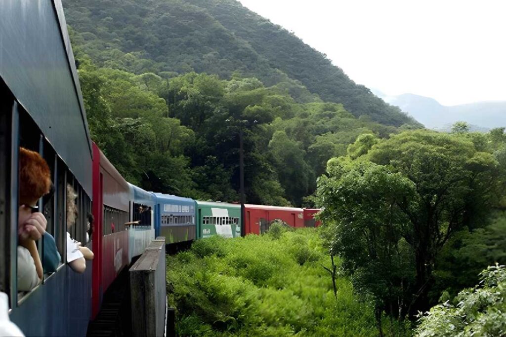O grande diferencial é o ritmo: sentir o trem avançar pelos trilhos, atravessar túneis antigos e observar a paisagem mudar aos poucos cria uma conexão íntima com o destino.