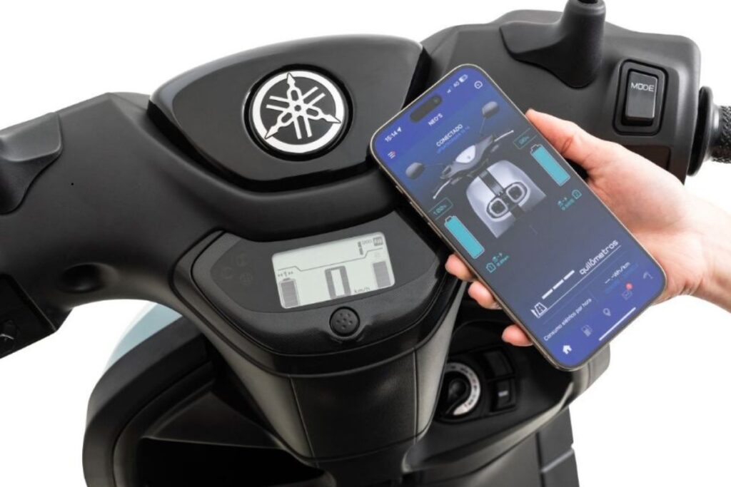 O painel digital em LCD mostra velocidade, nível de bateria, modo de condução e outras informações importantes. Ao mesmo tempo, o aplicativo Y-Connect permite conectar o smartphone ao veículo.